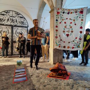 The performance “Mountains, I am greeting you” opens an intimate time-space for the resistance and resilience of Kurdish bodies as bodies, grounded in material presence. This kind of presence is vital and crucial for creating a necessary struggle for radical change against colonial history. Through performative time-framing, artistic visual research and aesthetics of emotion, Wirya Budaghi aims to share a space for response, reflection, and participation with those bodies and histories, as well as with their struggle and pain.